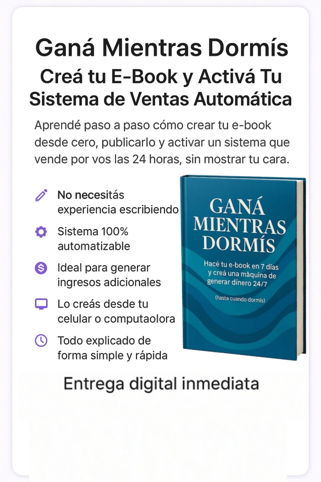 “Yo estaba trabada con ‘qué hago’ y ‘cómo lo vendo’. Con esta guía entendí el paso a paso, elegí un tema, armé el índice y terminé mi e-book sin perderme. Lo más valioso: te muestra cómo dejarlo listo para vender online.”